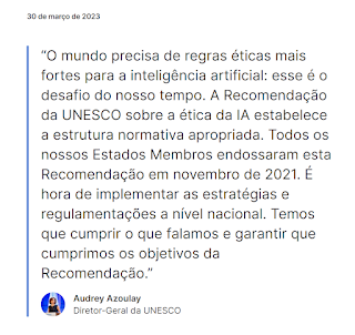 #inteligênciaartificial #IA #UNESCO #ética #direitoshumanos #desigualdadedegênero #desinformação #privacidade #proteçãodedadospessoais #responsabilidade #reparação